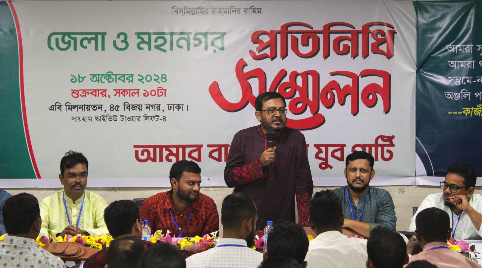 শুক্রবার (১৮ অক্টোবর) আমার বাংলাদেশ (এবি) যুব পার্টির সদস্য সচিব হাদীউজ্জামান খোকনের সঞ্চালনায় যুব পার্টির আহ্বায়ক শাহাদাতুল্লাহ টুটুলের সভাপতিত্বে যুব পার্টির প্রতিনিধি সন্মেলনে প্রধান অতিথির বক্তব্যে তিনি এ কথা বলেন।