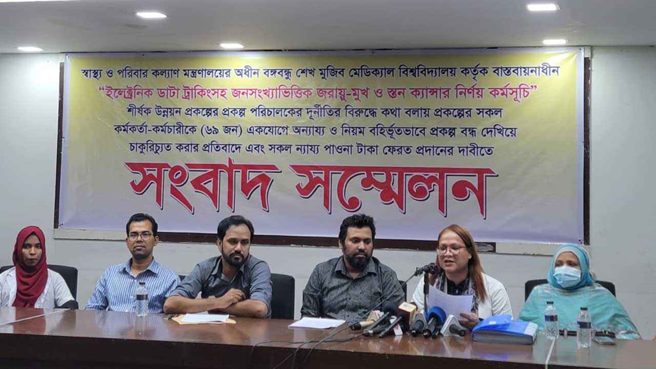 সংবাদ সম্মেলনে সাংবাদিকদের দেওয়া কিছু কাগজে উল্লেখ করা হয়, বিএসএমএমইউর উপ-উপাচার্য (প্রশাসন), রেজিস্ট্রার ও হাসপাতাল পরিচালকরের সাথে দেখা করতে গেলে বিএসএমএমইউর হাসপাতাল পরিচালক জানান, মন্ত্রণালয় থেকে সিদ্ধান্ত হয়েছে এই প্রকল্পের কর্মকর্তা-কর্মকারীদের জুন, ২০২৪ থেকে চাকুরি থেকে অব্যাহতি দেখানোর প্রস্তাবনা দেওয়া হয়েছে।