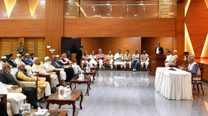 রাজনৈতিক দলের নেতাদের উদ্দেশে ড. ইউনূস বলেন, আপনারা সবাই ভালো বোঝেন। সবাই মিলে আমরা একজোট হয়ে যেন কাজটা করতে পারি, সবাই একত্র হয়ে বললে একটা সমবেত শক্তি তৈরি হয়, এই সমবেত শক্তির জন্যই আপনাদের সঙ্গে বসা।