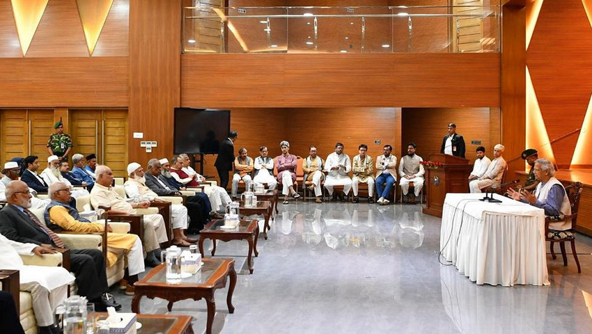 রাজনৈতিক দলের নেতাদের উদ্দেশে ড. ইউনূস বলেন, আপনারা সবাই ভালো বোঝেন। সবাই মিলে আমরা একজোট হয়ে যেন কাজটা করতে পারি, সবাই একত্র হয়ে বললে একটা সমবেত শক্তি তৈরি হয়, এই সমবেত শক্তির জন্যই আপনাদের সঙ্গে বসা।