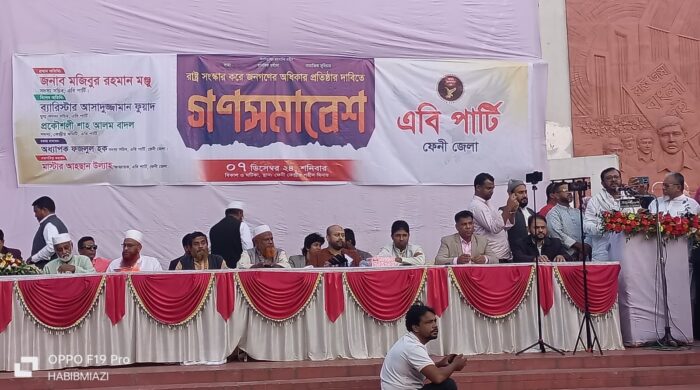 জেলার অন্যতম নেতা শাহদাৎ হোসেন সাজুর সঞ্চালনায় গণসমাবেশে আরও বক্তব্য রাখেন ফেনী জেল শাখার সদস্যসচিব অধ্যাপক ফজলুল হক, জনতার অধিকার পার্টির চেয়ারম্যান তারেকুল ইসলাম, জেলা শাখার যুগ্ম আহবায়ক মোতাহের হোসেন বাহার, যুগ্ন সদস্য সচিব নজরুল ইসলাম কামরুল,অর্থ সম্পাদক মাস্টার শাহ আলম শাহীন সোলতানী, অফিস সম্পাদক মীর ইকবাল ভূঞা, সমাজ সেবা সম্পাদক, এবি সিদ্দিক ভূঞা,নারী বিষয়ক সম্পাদিকা জাহানারা আক্তার মণি, ফেনী সদর উপজেলা আহবায়ক সাহাদাত হোসেন ভূঞা, পৌর সভা আহবায়ক আবুল কালাম আজাদ সেলিম, সোনাগাজী উপজেলা আহবায়ক অধ্যাপক রহমত উল্লাহ, সদস্য সচিব ওয়াসিউর রহমান খসরু , এবি পাটি, এবি যুব পার্টি আহবায়ক সফিউল্লাহ পারভেজ, ফেনী পৌর শাখা সদস্য সচিব অধ্যাপক রিজওয়ানুল খায়ের,এবি পার্টি, এবি যুব পার্টি ফেনী জেলা এস এম ইব্রাহীম সোহাগ, নারী নেত্রী, জোহরা আক্তার ডলি,এবি পার্টি ছাগলনাইয়া উপজেলা নাফিজ ইমতিয়াজ, যুগ্ম সমন্বয়ক জহিরুল আলম মজুমদার,যুগ্ম সমন্বয়ক শরীফুল ইসলাম লিংকন,ফেনী সদর উপজেলা যুগ্ম সদস্য সচিব হাফেজ কামরুল ইসলাম প্রমুখ।