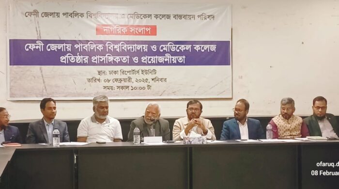 শনিবার (৮ ফেব্রুয়ারী) সকালে ঢাকা রিপোর্টার্স ইউনিটির নসরুল হামিদ মিলনায়তনে “ফেনী জেলায় পাবলিক বিশ্ববিদ্যালয় ও মেডিকেল কলেজ প্রতিষ্ঠা : প্রেক্ষাপট ও প্রয়োজনীয়তা” শীর্ষক নাগরিক সংলাপ বাস্তবায়ন পরিষদের আহ্বায়ক অধ্যাপক আবু আহমেদের সভাপতিত্বে এবং সদস্য সচিব সাইদুল ইসলামের পরিচালনায় অনুষ্ঠিত হয়।