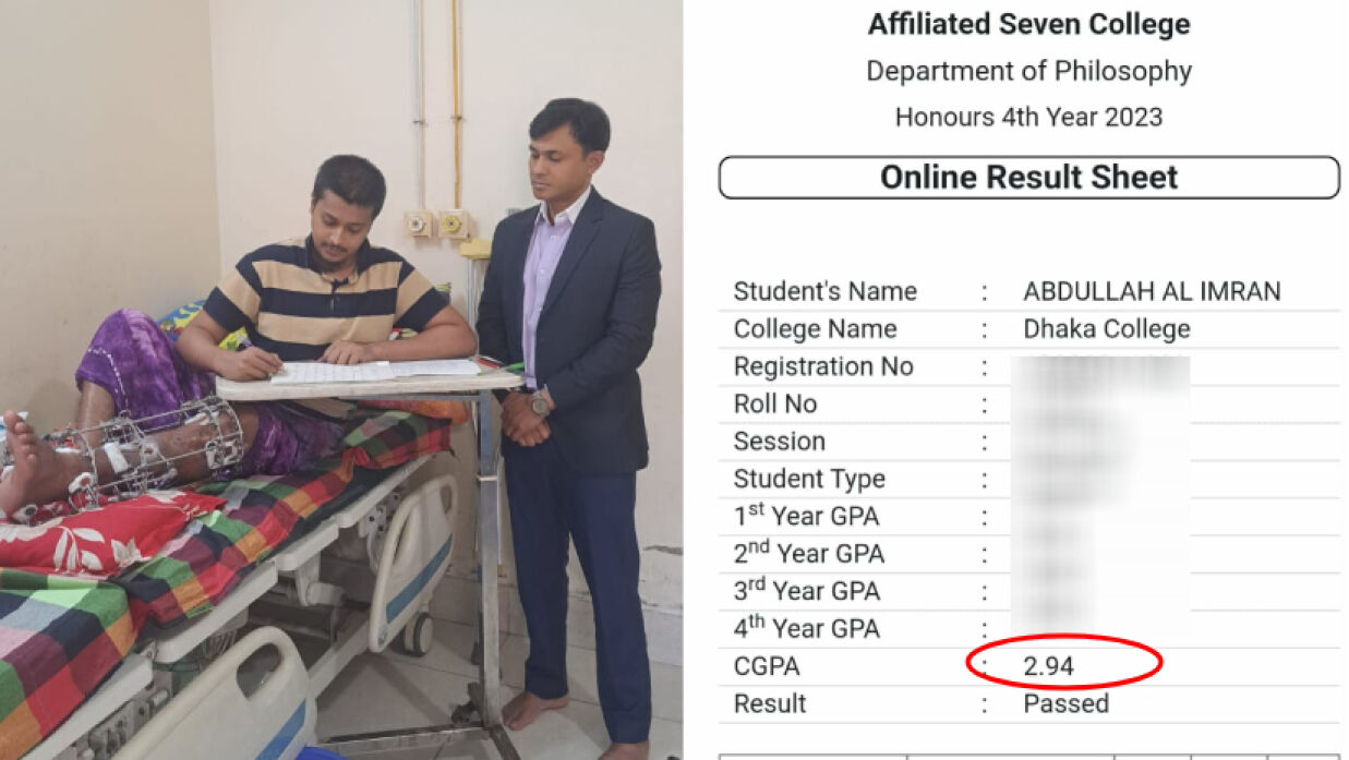 জুলাই গণঅভ্যুত্থান অংশ নিয়ে গত ১৯ জুলাই রাজধানীর বিজয়নগরে গুলিবিদ্ধ হয়েছিলেন ছাত্রদল নেতা আব্দুল্লাহ আল ইমরান। পরবর্তীতে তিনি চিকিৎসাধীন অবস্থায় হাসপাতালের বেডে বসে অনার্স চূড়ান্ত বর্ষের পরীক্ষায় অংশগ্রহণ করেন। ঢাকা কলেজের দর্শন বিভাগ থেকে পরীক্ষায় অংশ নেওয়া সেই শিক্ষার্থী সিজিপিএ-২.৯৪ পেয়ে সম্প্রতি গ্র্যাজুয়েট সম্পন্ন করেছেন।