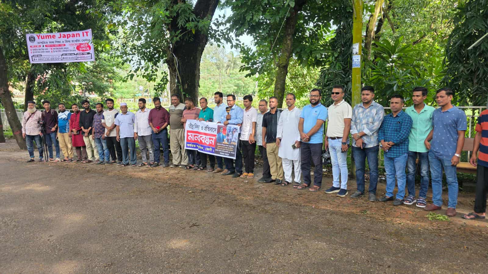 মানববন্ধনে সঞ্চালনায় ছিলেন এখন টিভির ফেনীর রিপোর্টার সোলায়মান ডালিম।